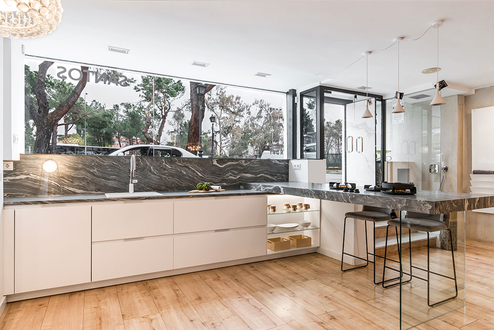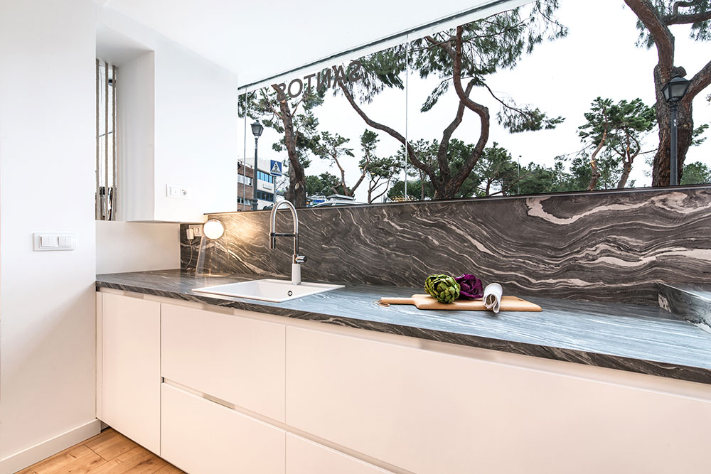 Neolith Tezgah, Islak zeminler, döşemeler, lambriler, kaplamalar, cepheler gibi yüzey uygulamaları için çözüm üretir.
